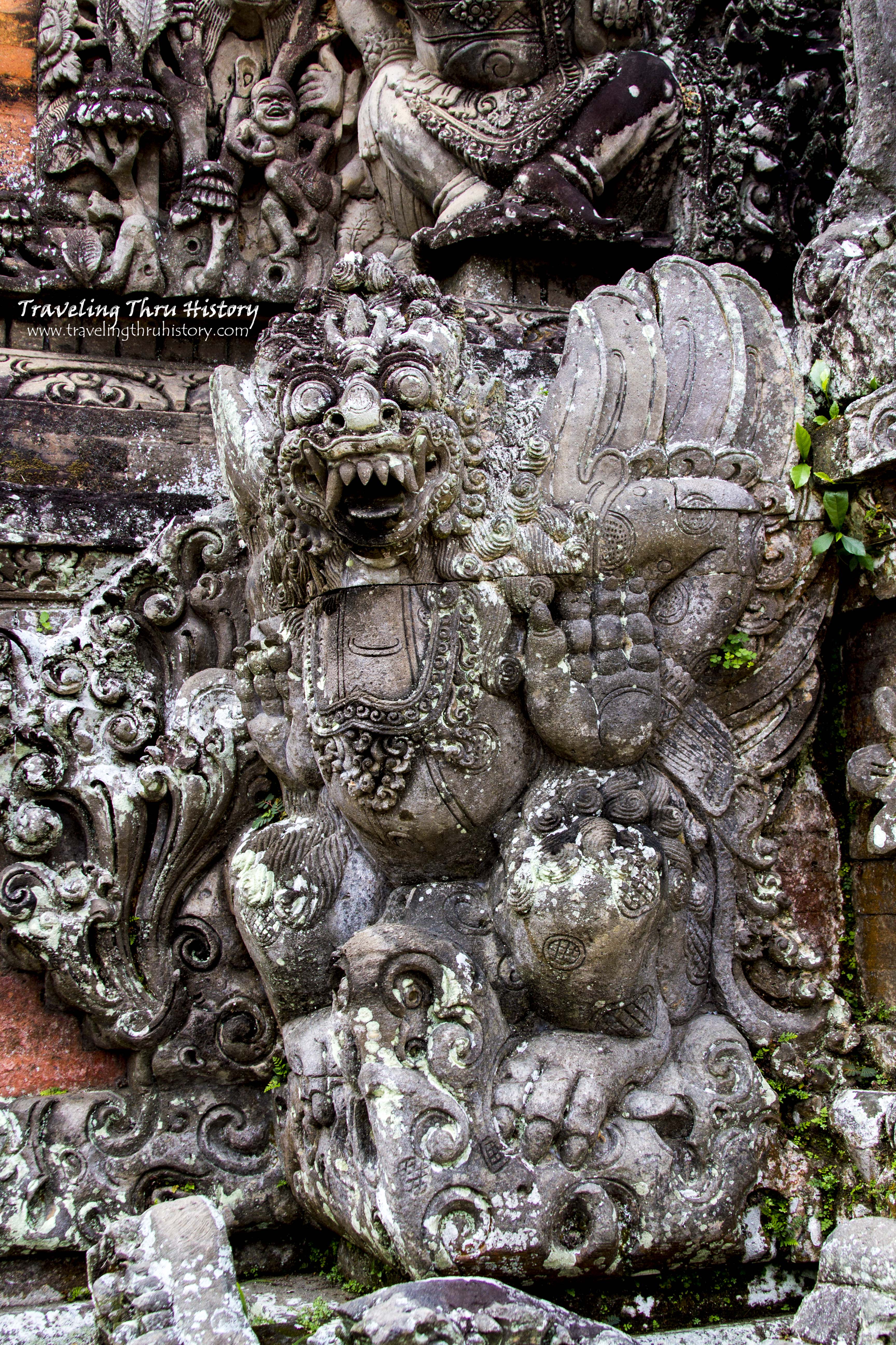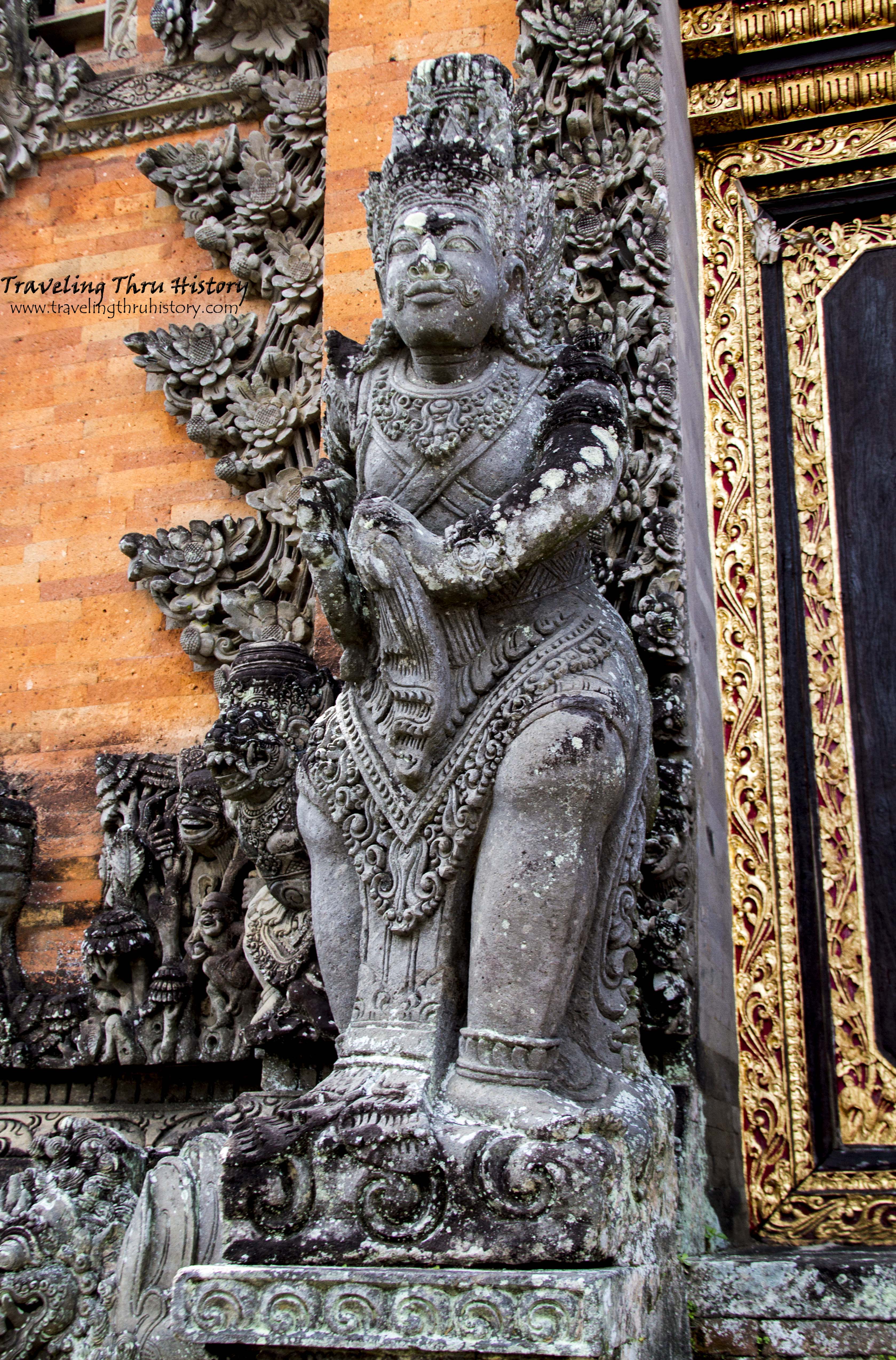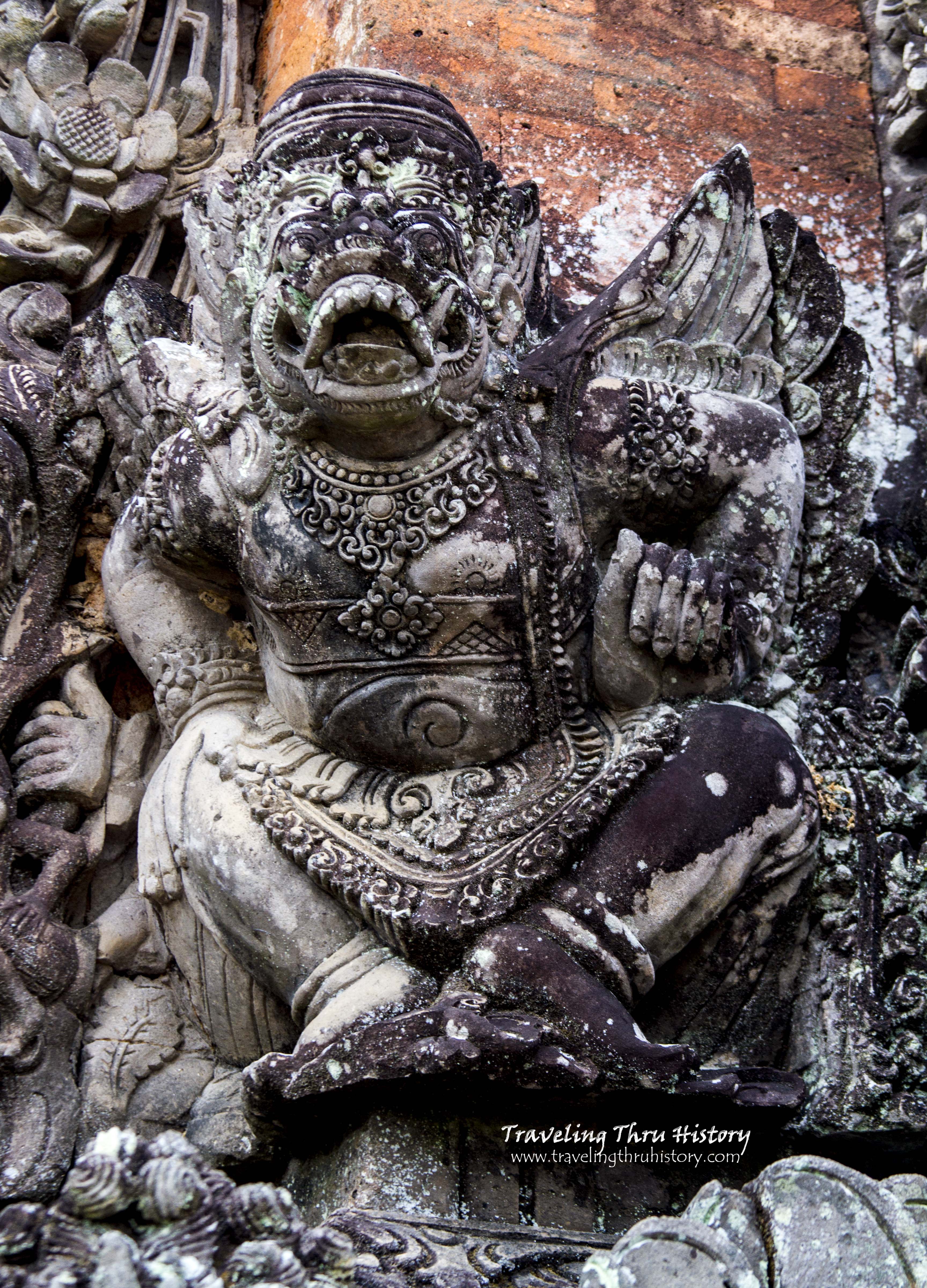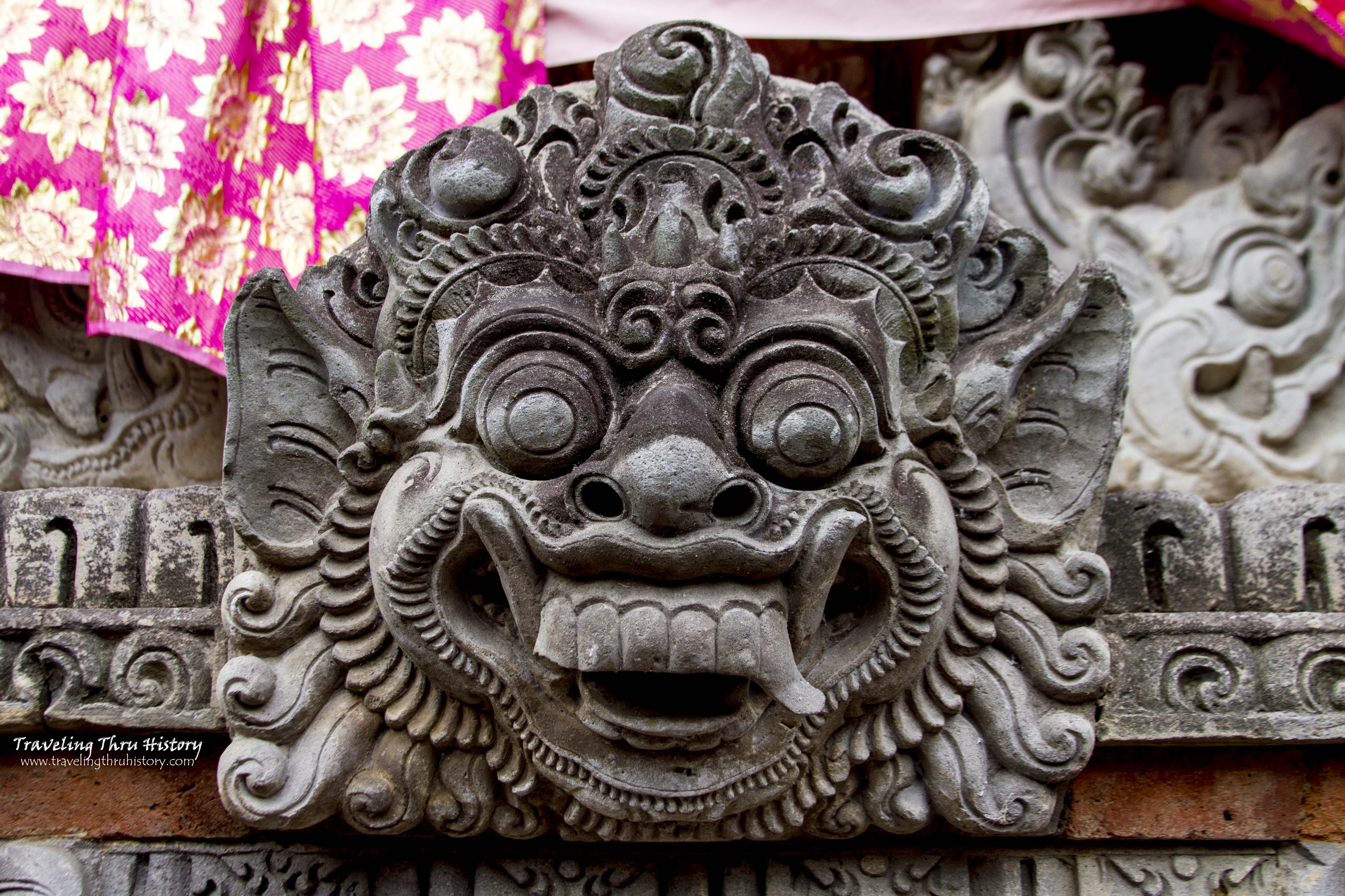 This is a stone statue of a Balinese Hindu god. He sits outside the entrance to the outer courtyard. I looked around for an hour trying to figure out this guy’s name, but I couldn’t find it. I actually had a hard time with finding any definitive information on the statues and carvings on Balinese temples. There are several different sites that list different names, but the consensus is that this statue is guarding the entrance to the temple.