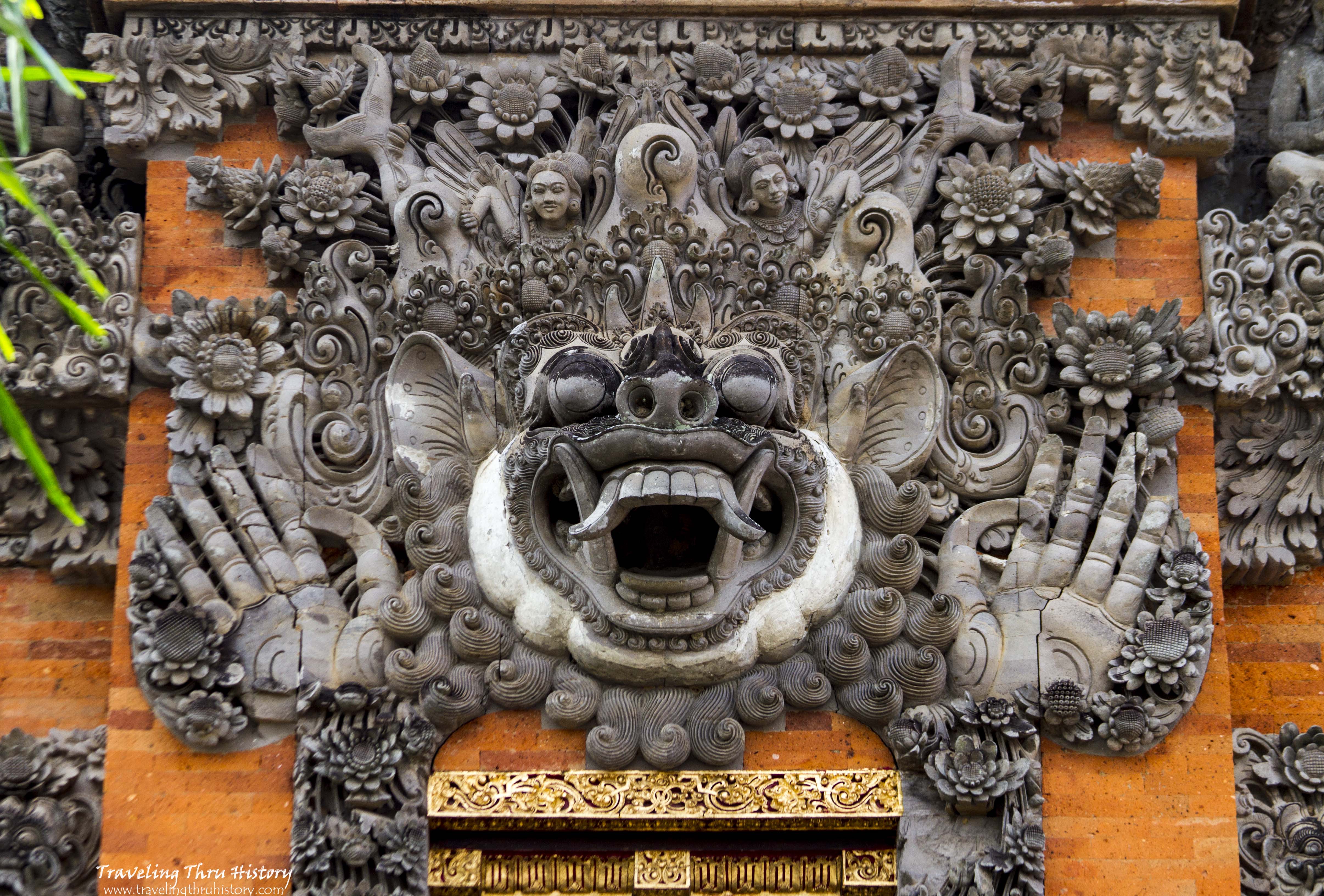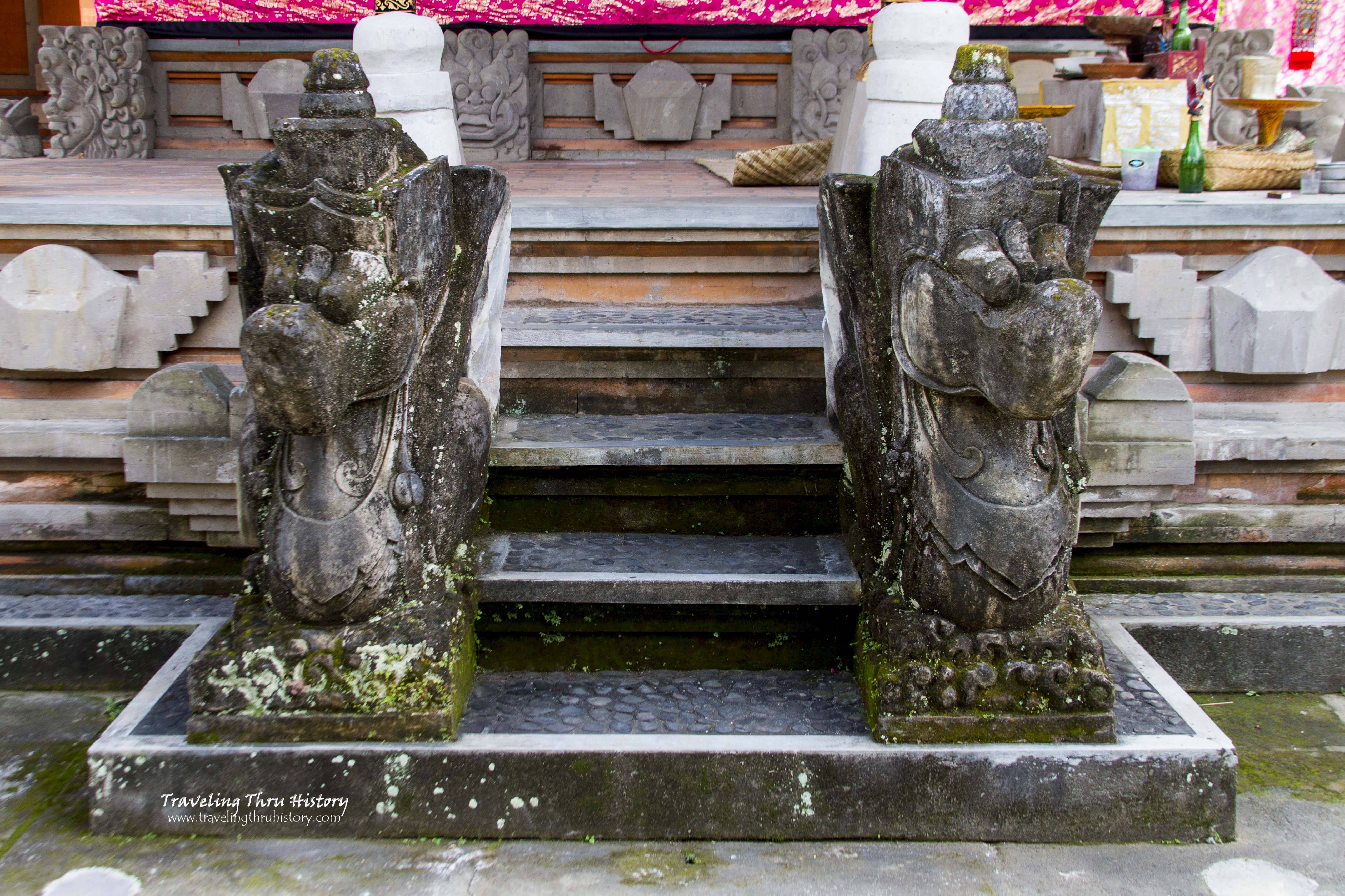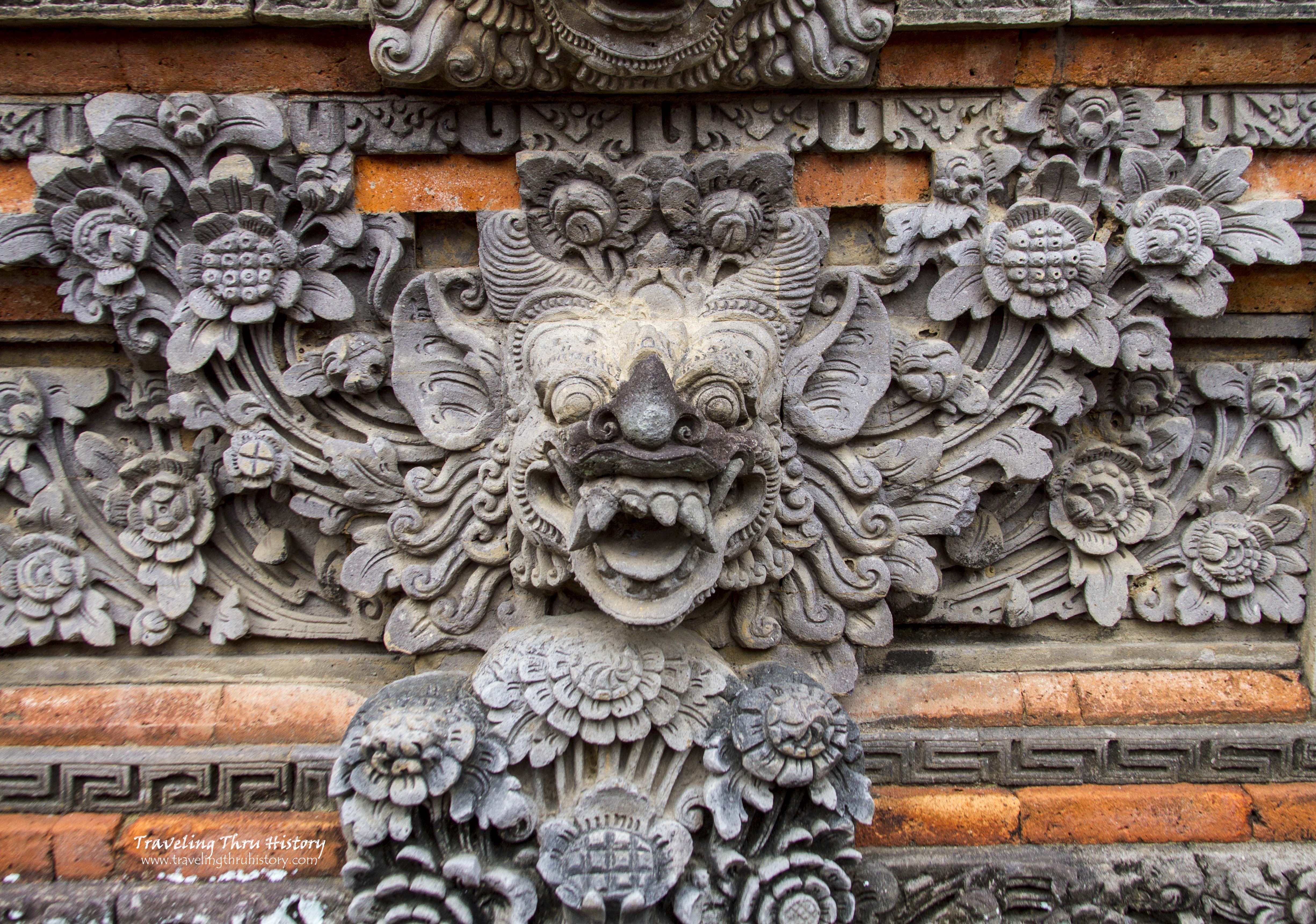 This is a stone statue of a Balinese Hindu god. He sits outside the entrance to the outer courtyard. I looked around for an hour trying to figure out this guy’s name, but I couldn’t find it. I actually had a hard time with finding any definitive information on the statues and carvings on Balinese temples. There are several different sites that list different names, but the consensus is that this statue is guarding the entrance to the temple.