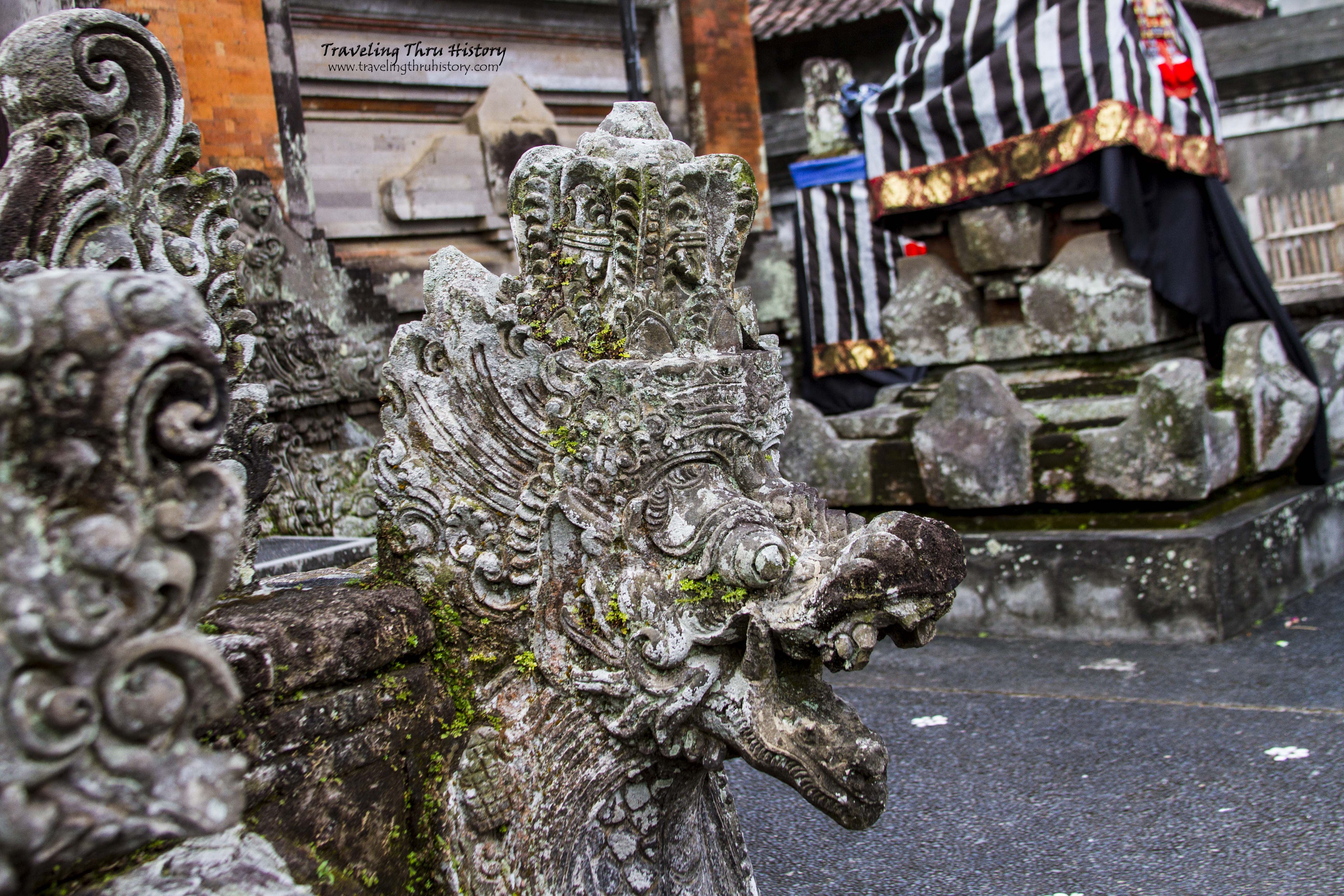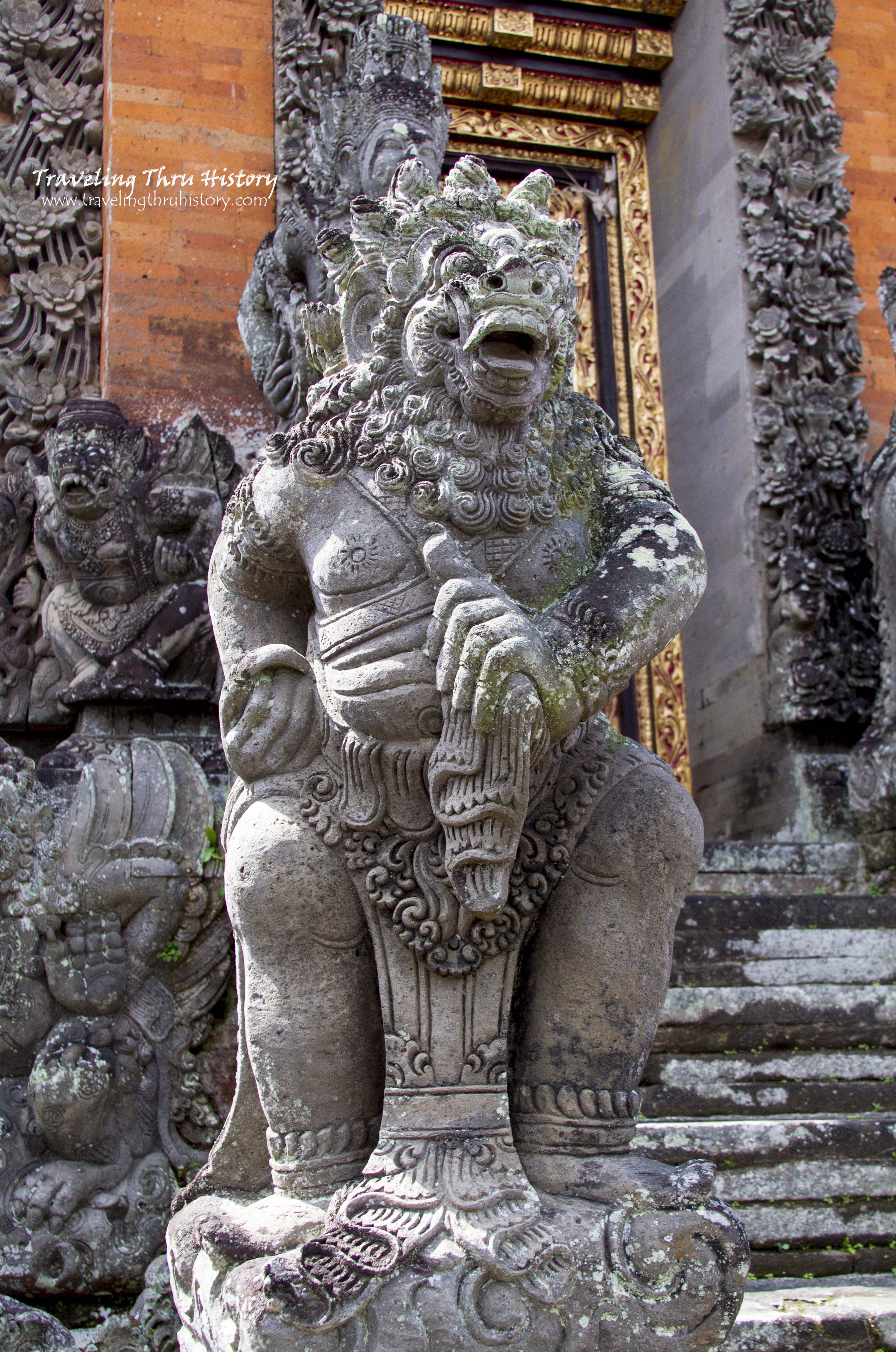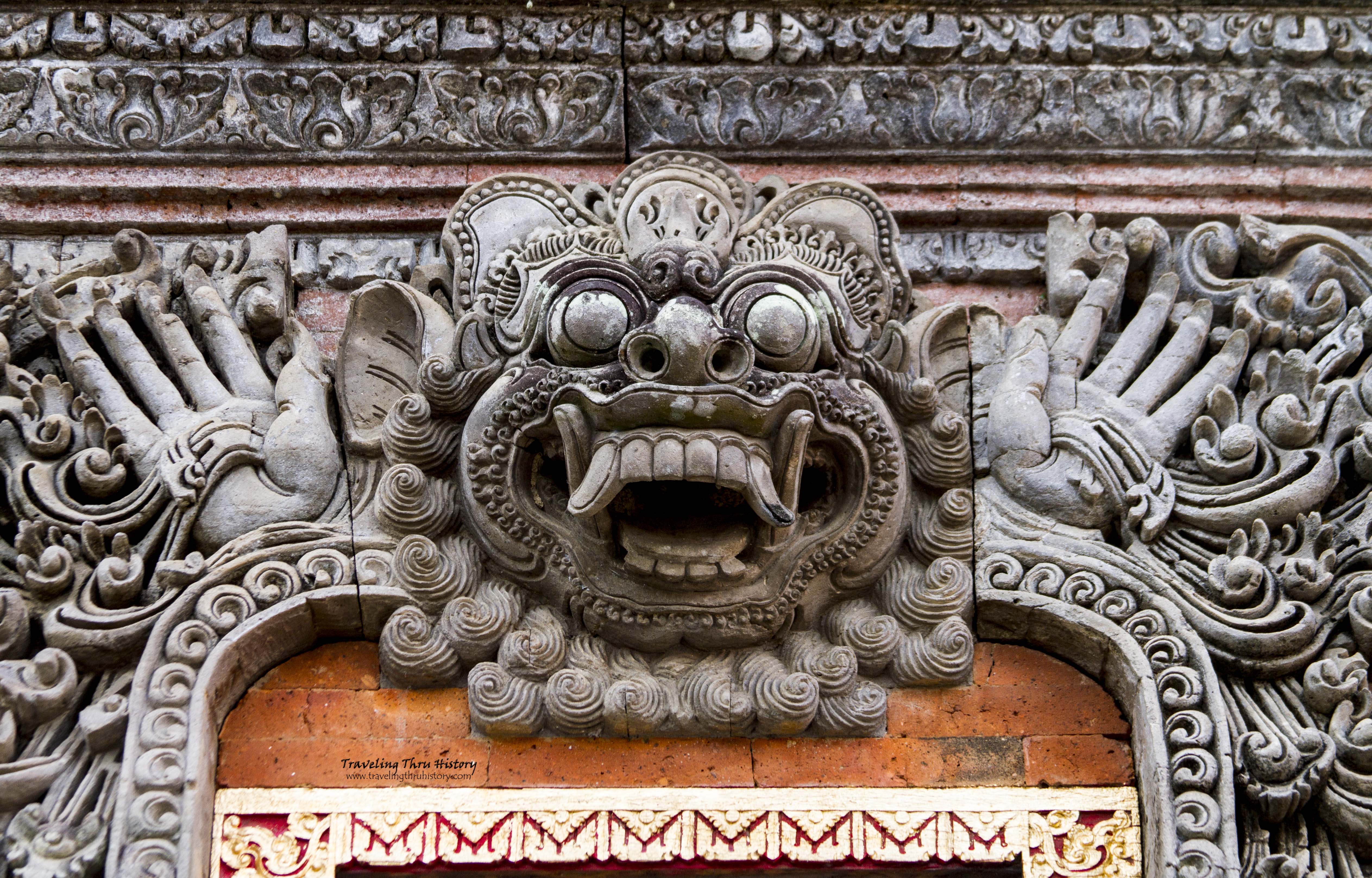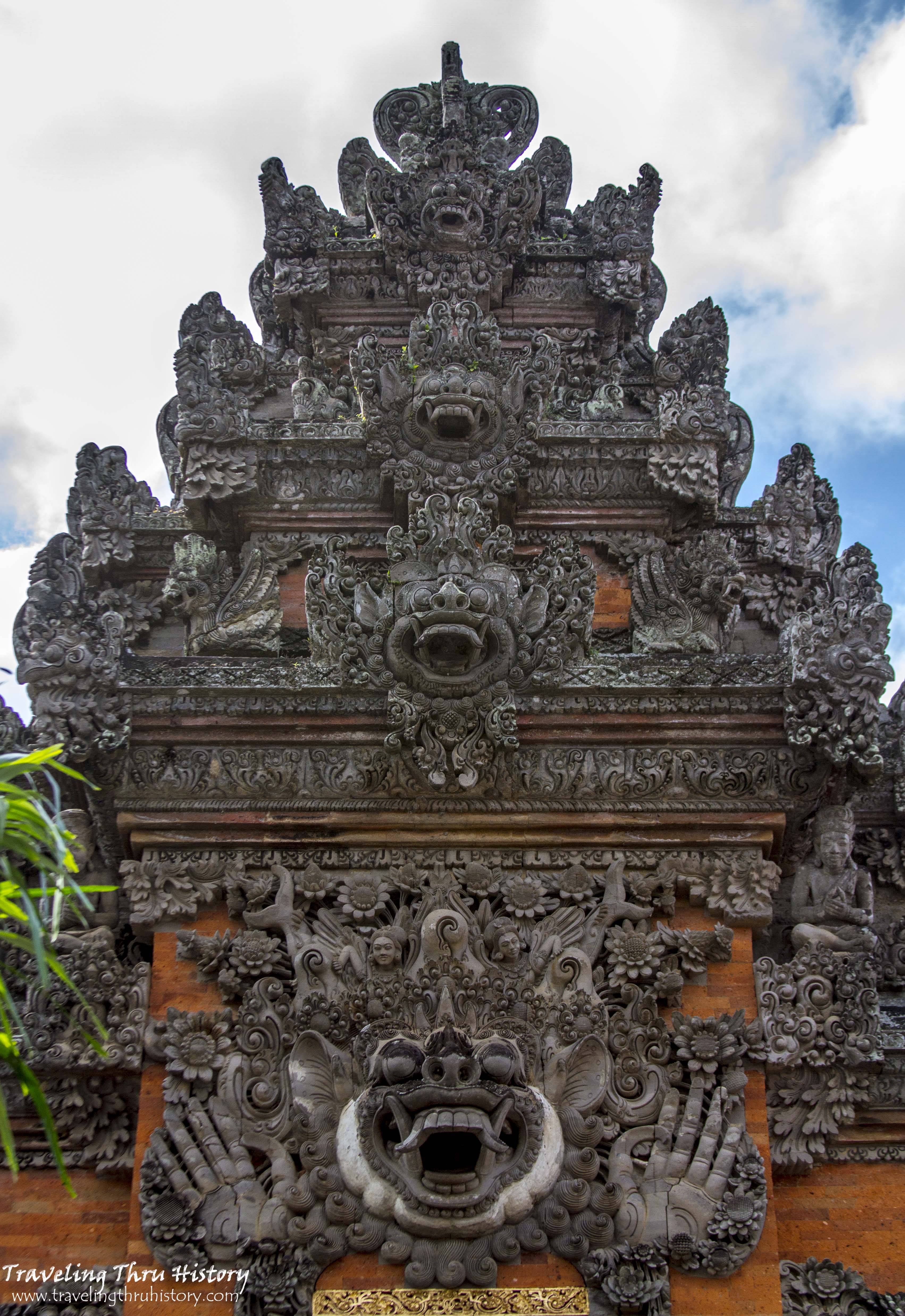 This is a stone statue of a Balinese Hindu god. He sits outside the entrance to the outer courtyard. I looked around for an hour trying to figure out this guy’s name, but I couldn’t find it. I actually had a hard time with finding any definitive information on the statues and carvings on Balinese temples. There are several different sites that list different names, but the consensus is that this statue is guarding the entrance to the temple.