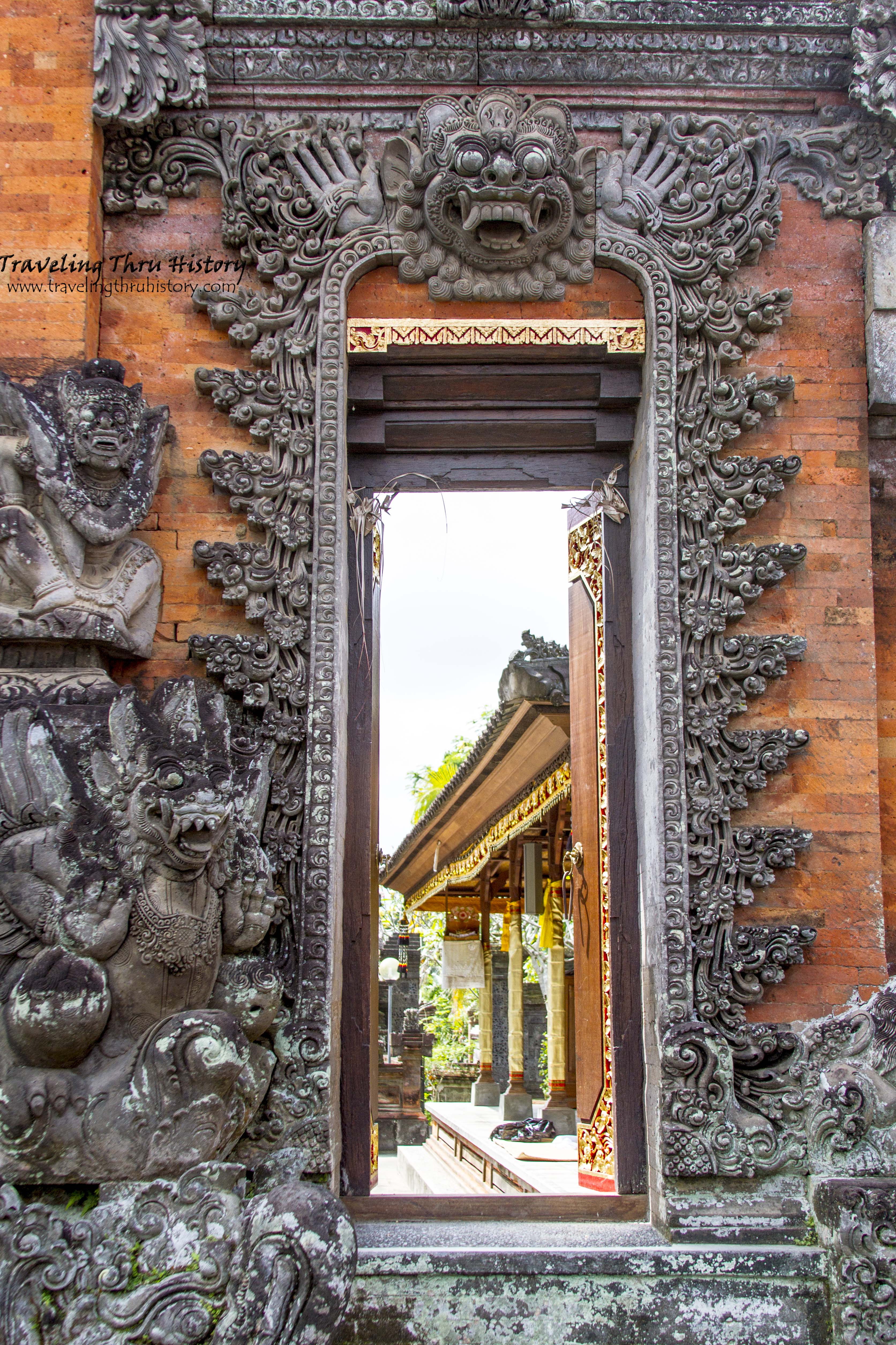 The first part of the Tri Mandala is known as the Nista mandala, or outer zone, and is used for dance performances and an are to make preparations during religious festivals. This is one of the doors congregants have to go through to get into this area.